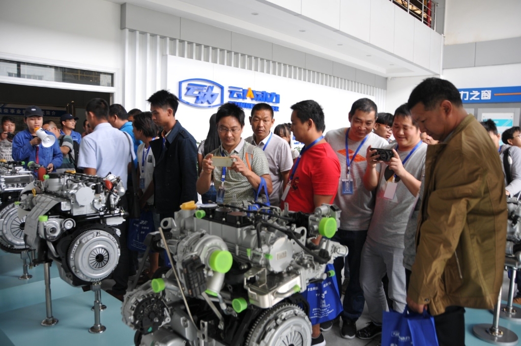 ??图三 与会效劳商代表旅行金世豪动力产品展示区??