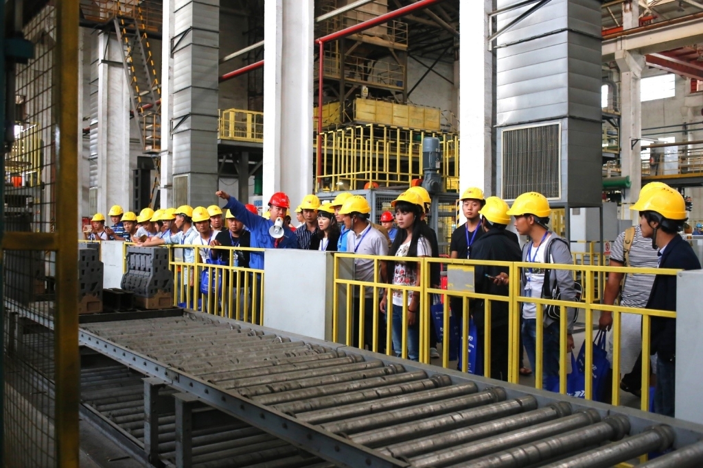 图一 与会效劳商代表旅行金世豪动力铸工车间