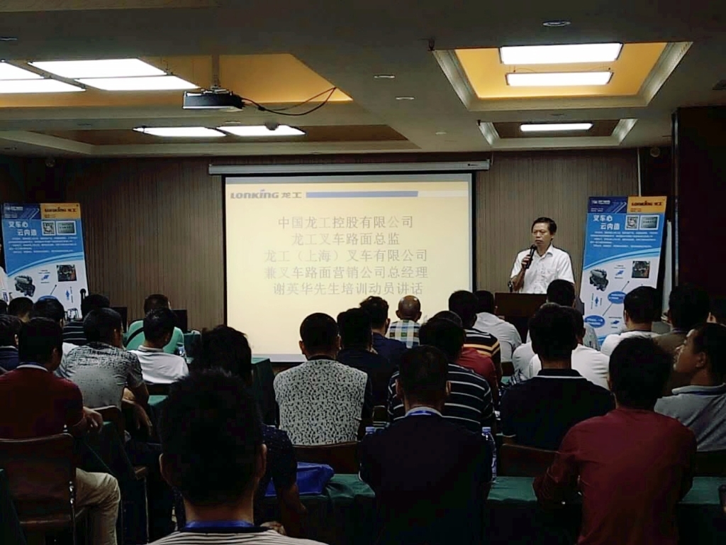 聚会开幕式上,,,中国龙工控股有限公司叉车路面总监、龙工(上海)叉车有限公司兼叉车路面营销公司总司理谢英华先生揭晓了培训发动讲话,,,他体现,,,现在搭载金世豪动力三阶段共轨动力的龙工叉车市场销售量已经超千台,,,其绿色环保、低油耗、低噪音、低震惊、动力强劲等优越特征获得了宽大用户的青睐和认可,,,但金世豪目的绝不止步于此,,,希望列位经销商在此次培训会时代增强学习与交流,,,一连更新产品效劳理念、立异产品效劳模式、提升产品效劳能力,,,进一步加速电控共轨叉车周全走向市场的程序。。。。。
